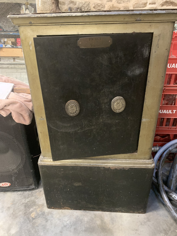 "...je viens d'acheter un coffre fort Fichet numéro de série 10213 donc d'après ce que j'ai vu sur ce forum il daterait de 1840 environ si je ne me trompe pas.J'aimerais bien arriver à déterminer le modèle du coffre et de sa serrure.C'est une serrure à code caché à 3 chiffre + serrure à clé.